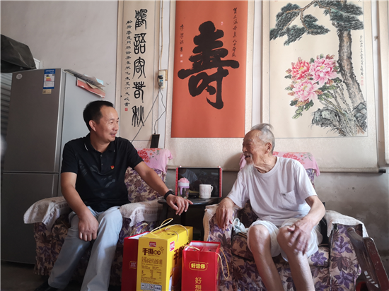 9月3日,在抗日战争暨世界反法西斯战争胜利75周年纪念日到来之际,周口市淮阳区委老干部局局长樊飞带领局领导班子走访慰问抗日战争时期参加革命工作的老干部袁志华、祖兴、张永信、吴振豫、李敬伦,为他们送去了组织的关怀和问候,并送去了慰问品和慰问金,感谢他们在革命工作中对党、国家和人民作出的贡献。