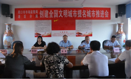 9月7日上午,周口市市场监督管理局港区分局召开创建全国文明城市提名城市推进会,局长崔健主持会议并对下一步创文工作进行部署,分局全体人员参加会议。