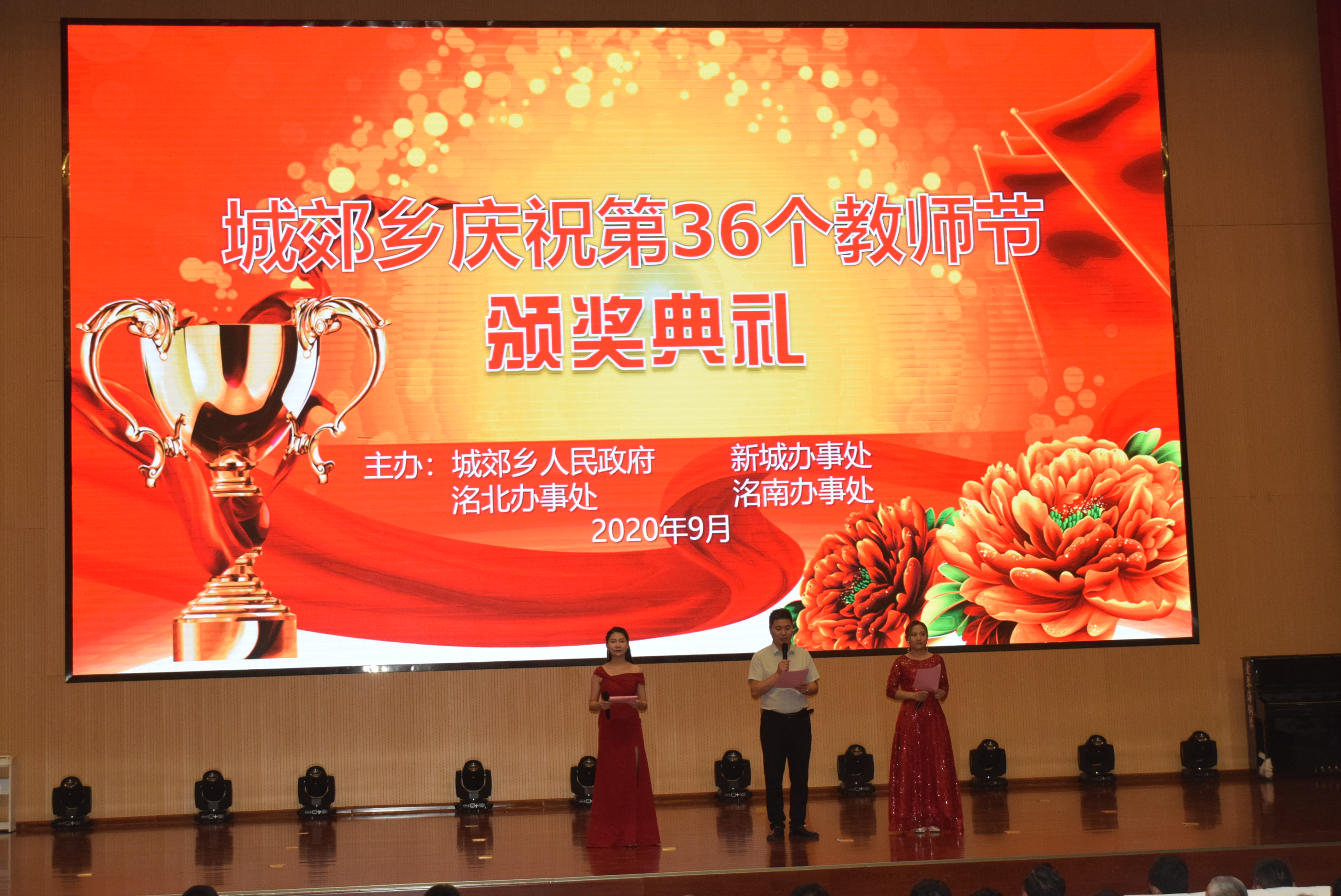 教体局人事股股长于广峰、城郊乡党委书记 王忠、新城党工委书记王一博、城郊乡政府乡长崔鑫、新城办事处主任赵玉超、 洺北办事处主任吴俊、洺南办事处主任王彩玲、 教师进修学校校长杨洪涛等出席会议,并为先进单位和个人颁奖。城郊乡、三个街道办党委政府其他主要领导、尊师重教先进单位代表、老教师代表、公民办学校全体教师600余人参加典礼。