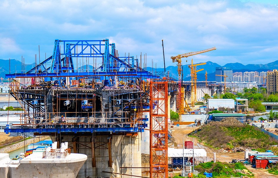 4月2日,在中铁四局杭绍台铁路7标重点控制性工程台州中心站和台州中心站特大桥施工现场,起重机、挖掘机、旋挖钻等大型机械正在紧张有序地作业,运输车辆、运梁车来来回回,工地上一片繁忙的工作场景。仅在台州中心站工点,高峰期便有30台大型机械、800多人同时施工,力争今年12月份完成主体框架施工和所有架梁施工。