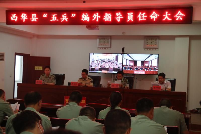 会议在庄严的国歌声中拉开帷幕。县人武部政委涂友佳主持会议。县退役军人事务局局长龚坤敬传达学习了河南省军区政治工作局、河南省退役军人事务局《关于建立健全关爱机制、设立“五兵”编外指导员的通知》,西华县人武部、西华县退役军人事务局《关于各乡镇(办)“五兵”编外指导员任职的通知》《关于明确“五兵”编外指导员工作机制的通知》等文件精神。县人武部政工科科长梁艳举就在基层设立“五兵”编外指导员的意义及下一步工作重点进行辅导培训。另外还为20多名乡镇级“五兵”编外指导员、第二编外指导员颁发了任命书。