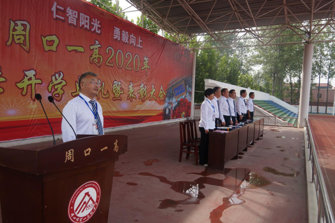 九月的校园阳光和煦,金桂飘香。操场主席台前一排红色的班旗灿如朝霞,学生们身着校服,排着整齐的方队,精神抖擞;老师们统一着装,佩戴工作牌,神采奕奕。9月16日,周口一高年新学期开学典礼暨表彰大会如期举行。