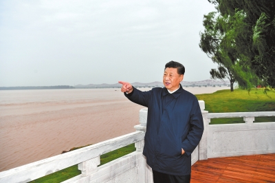 2019年9月17日下午,习近平在郑州黄河国家地质公园,眺望黄河郑州段。新华社记者 谢环驰 摄
