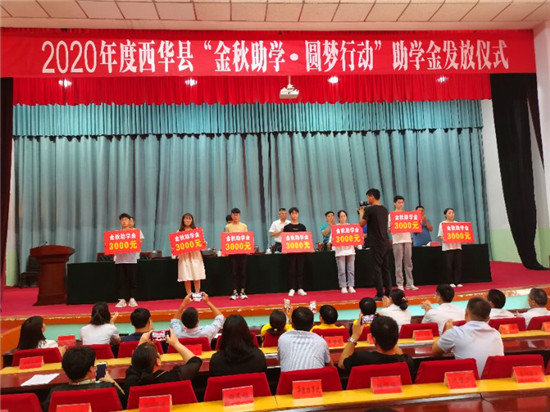 当主持人宣布爱心人士方凯这次为“金秋助学·圆梦行动”资助10名西华县贫困大学生的时候,全场响起热烈的掌声。