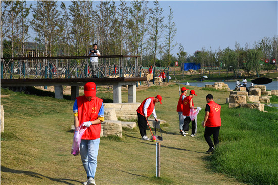 为相应共青团河南省委号召,传播绿色生态理念,助力生态文明建设,9月19日,共青团商水县委组织20余名青年志愿者在商水森林公园开展“‘河’我一起,守护碧水 2020净滩行动”。