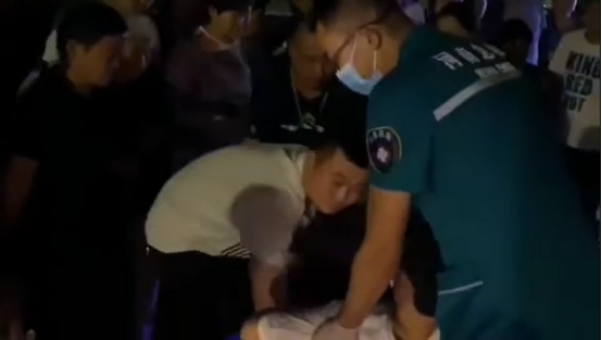 当日22时许,张旭下班返家途中,在人民路市市场监督管理局附近遇到一起车祸。张旭上前查看情况,只见一男孩躺倒在地、痛苦呻吟,地上有少量血迹,电动车歪倒在路中央。