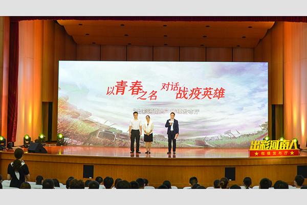 “天使白”“橄榄绿”“守护蓝”“志愿红”……以自己的亲身经历、铿锵誓言、闪耀丹心绘就了感人肺腑、可歌可泣的时代画卷。“全国抗击新冠肺炎疫情先进个人”,被河南省委书记、河南省人大常委会主任王国生点赞,直接用手为80岁老人清理肛肠粪石的“最美逆行人”、焦作市人民医院重症医学科医生赵童;“请总书记放心,我们一定会在平凡岗位上续写不平凡的故事”“用自己的辛勤劳动为疫情防控和经济社会发展贡献更多力量”,一直坚守保洁、物业等岗位,主动请战驰援武汉等地医院,以实际行动为抗击疫情作出特别贡献的郑州圆方集团职工;“我是退伍老兵,更是共产党员”“牵挂和责任支撑我奋斗”“从一个人到一群人,从10吨菜到130吨菜,从大年三十到春暖花开,三次冒着生命危险去武汉送蔬菜的河南周口市沈丘县田营村党支部书记王国辉:“前线后方齐心战‘疫’,青春伉俪双双出彩”“伉俪携手‘不做被保护的人’”“爱情之花在抗疫中绽放”的河南大学援鄂医生黄志昂、抗体药物开发技术国家地方联合工程实验室主任李霞夫妇……通过他们有温度、有情感、有深度地讲述“亲身经历的战疫”,让大家读懂了“世上没有从天而降的英雄,只有挺身而出的凡人”,正是他们以不怕苦、不畏难、不惧牺牲的英雄气概,用臂膀扛起如山的责任,展示出青春激昂的风采,展现出中华民族的希望。