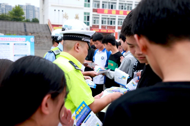 民警们还给师生发放了交通安全知识宣传单,倡议同学们当好道路交通安全知识“小宣传员”“小监督员”,监督自己的家长和身边的小朋友规范交通行为,知安全风险、懂紧急避险,防患于未然,远离交通事故危害。
