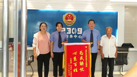 经过劝说,双方各自做出让步,胡某某也很后悔自己动手打人的行为,率先表达歉意,并主动赔偿2000元,冯某某对处理结果很满意,双方握手言和。事后,冯某某特地制作了一面“心系百姓、为民解忧”的锦旗,并送到淮阳人民区检察院,以表达感谢之情。