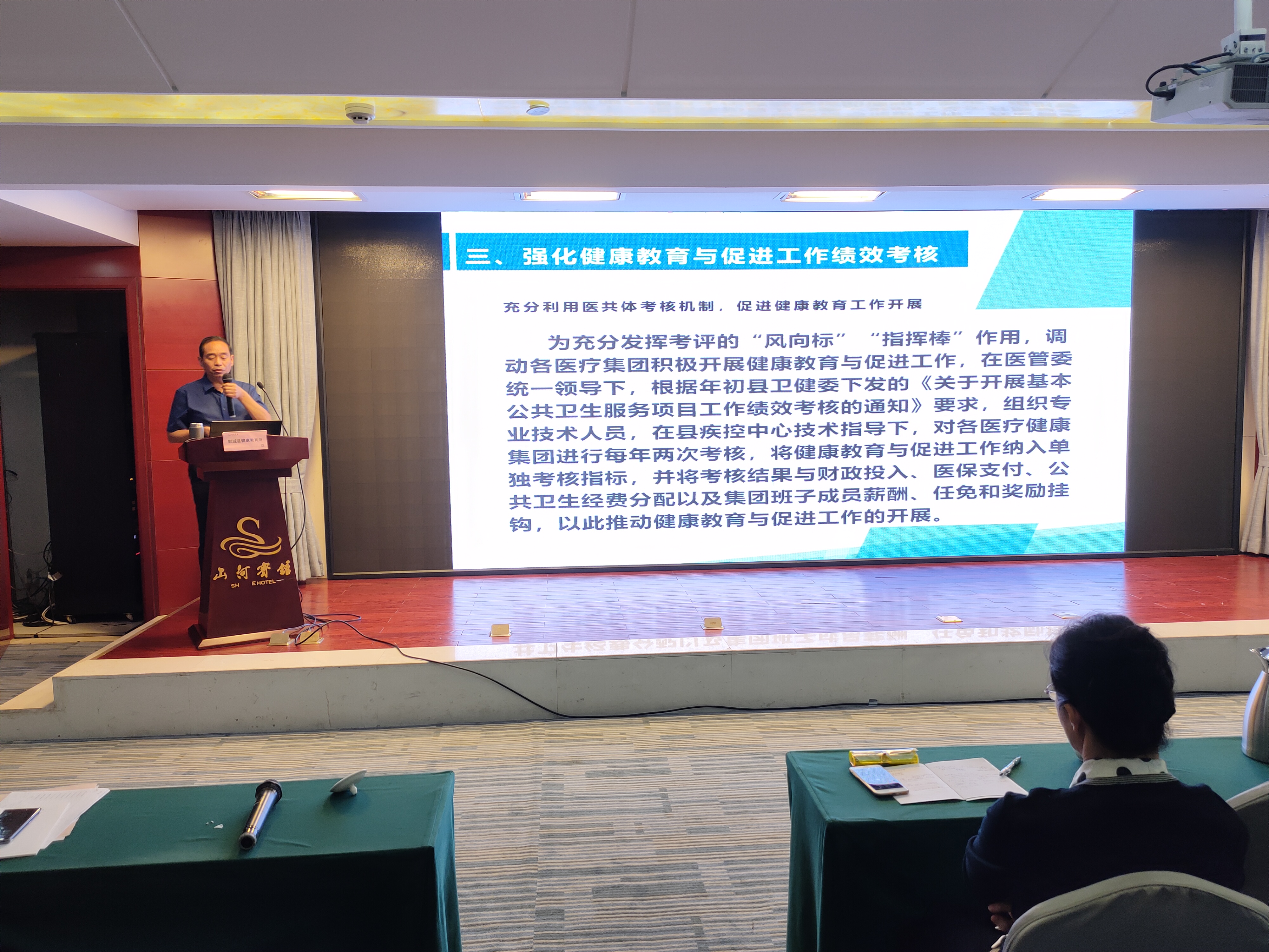 9月23日至24日,河南省疾病预防控制中心在郑州举办基本公共卫生服务健康教育工作能力培训班。郸城县受邀在会上作工作经验交流,县疾控中心主任张吉志以“高位推动 多措并举 明确责任 重抓落实”为题,全面、详细地介绍了在医共体背景下健康促进工作的开展情况。
