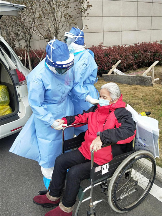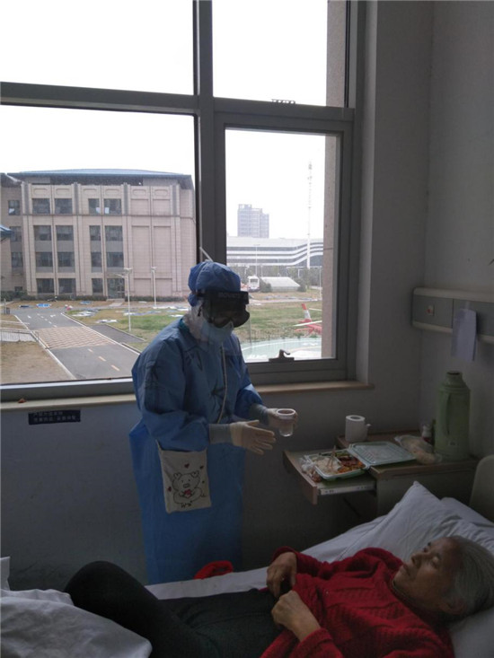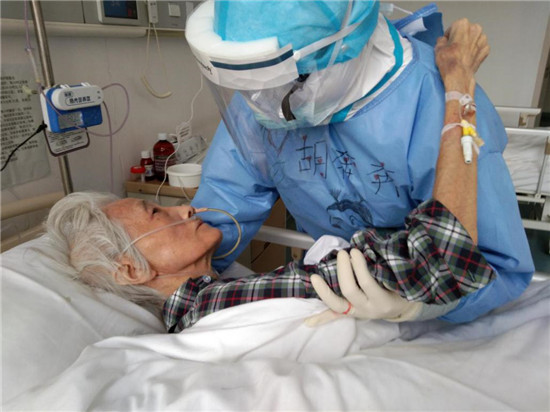 今年74岁的李秀红,不仅感染新冠肺炎,而且罹患老年痴呆,生活需要时时照顾,而且刚入院时,对陌生环境的恐惧造成她心情压抑,天天不说话,时不时落泪。为了让老人放下心理包袱,胡奔奔在进行哄喂吃饭、服药等正常护理之余,经常陪老人聊天、唱歌,后来老人情绪明显好转,还主动与胡奔奔一起扭起了舞蹈。后来,老人康复出院时,虽然无言 却一直紧紧抓着胡奔奔的手久久不愿放开。胡奔奔说,那一刻,她落泪了,但心里确实说不出的高兴。