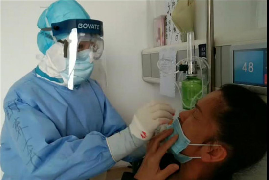众所周知,采集咽拭子、鼻咽拭子标本是非常危险的易感染密切接触行为,同时对患者来说也非常不适。在病区采集时,胡奔奔总是动作轻柔,边采集边轻声安抚患者,缓解患者紧张情绪。而不少患者因为感怀于胡奔奔的悉心照顾,总是强行压抑着自己的症状,尽量不发出咳嗽,避免对胡奔奔造成更大危险。