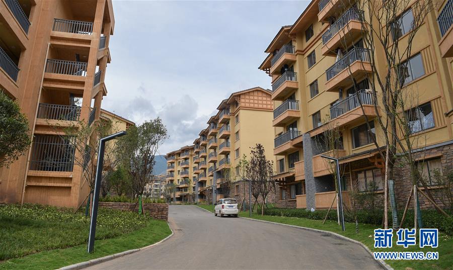 搬下山的人们,住进了有彝族传统建筑风格的新社区(8月11日摄)。 新华社记者 李贺 摄