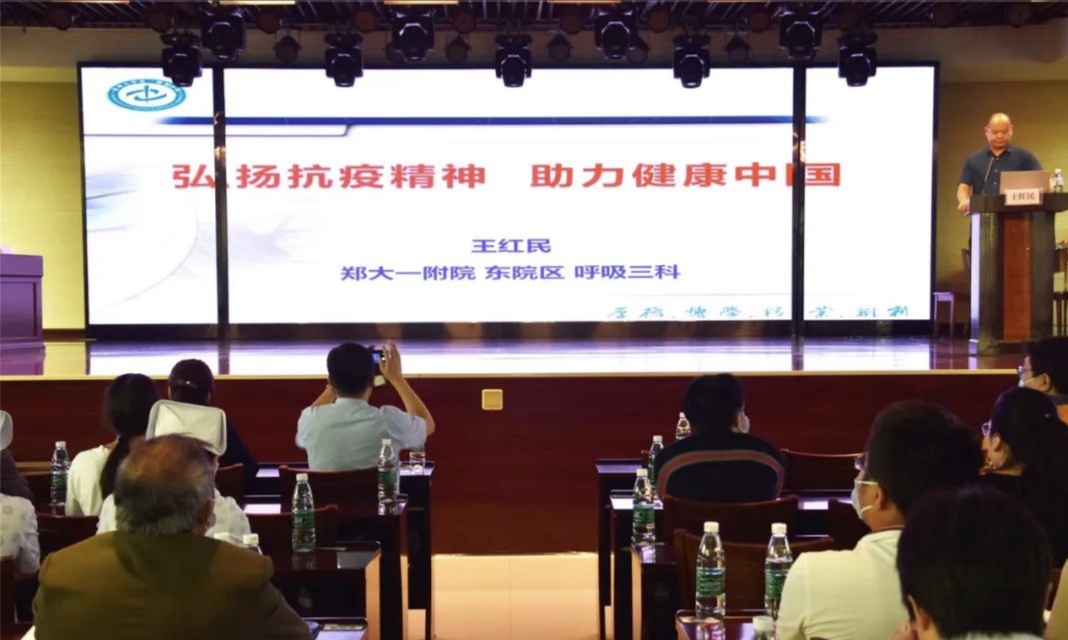 王红民教授曾经参加河南省援鄂医疗队,他给大家分享了在武汉第一家方舱医院——江汉方舱医院工作时的抗疫故事,当王教授说起援鄂医疗队“疫情不退,绝不言归”的口号时,台下响起雷鸣般的掌声。