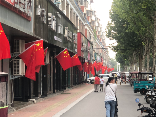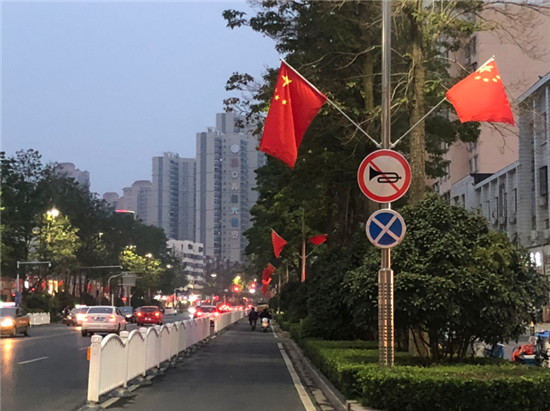 秋风徐徐,桂花飘香,旗帜鲜艳,迎风飘扬。国庆节临近,市区主要干道、重要窗口区域都悬挂着国旗,一路飘“红”,让市民在喜庆祥和的气氛中迎来第71个国庆节。
