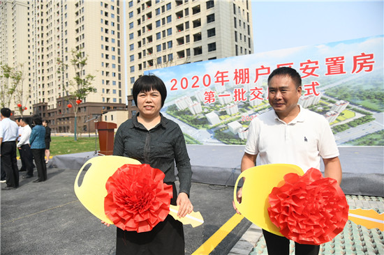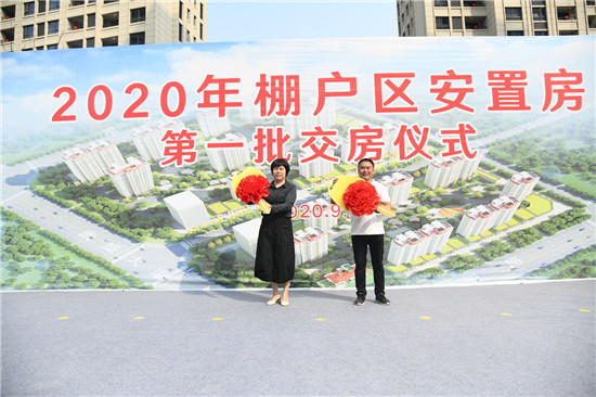 9月27日,2020年棚户区安置房第一批交房,德和家园业主代表喜领钥匙。记者 王映 摄 (③2)