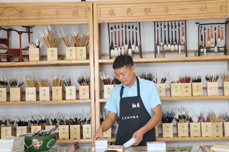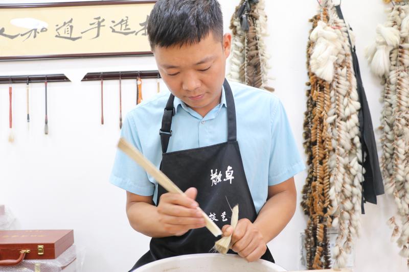 对刘永杰而言,从小到大最熟悉的就是“毛笔”,它如同自己形影不离的“伙伴”。在2010年一个偶然的机会,鹿邑文化界前辈潘又泉老师用了刘永杰手工制作的散卓毛笔后赞不绝口,叮嘱他一定要坚守好、传承好优秀的传统制笔文化。