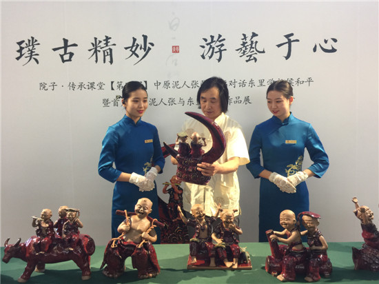 华夏九州龙腾虎跃,气韵生动践行初心。9月26日,张振福钧瓷泥塑东里学社书画作品展在郑州北龙湖畔青风院子举行,展出张振福钧瓷泥塑作品71件,包括《月亮船》《青梅竹马》《一鸣惊人》《好客中原人》《年年有鱼》《祝寿图》《读书郎》《童年游戏》等。张振福创新钧瓷与泥塑的完全结合,既保留了泥塑有趣的造型,又吸收了钧瓷色彩丰富的优点,增强了传统泥塑的艺术表现力。