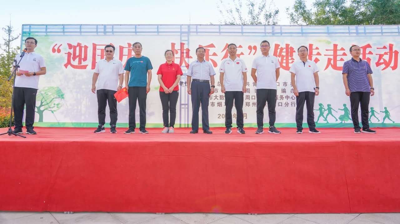 为庆祝中华人民共和国成立71周年,积极响应全民健身国家战略,倡导健康文明的生活方式,昨日,由市总工会、团市委、市妇联、市委编办、市大数据局、市行政服务中心等多家单位联合举办的2020年“迎国庆、快乐行”健步走活动在沙颍河畔铁路风情广场举行。我市260余名健步走爱好者踊跃参加。