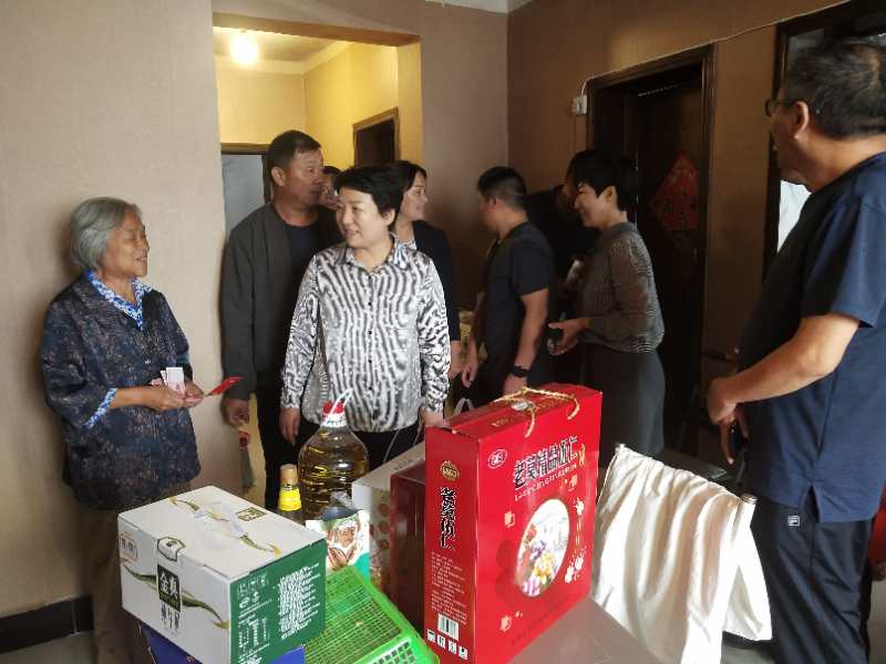 9月28日上午,川汇区副区长晋瑞英带领区卫健委、荷花路街道办事处、区计生协等单位有关人员,到荷花办事处西杨庄行政村吴某、前王营行政村袁某家中,慰问计生特殊家庭,开展“三个全覆盖”精准帮扶、温暖计划生育特殊家庭服务活动,并送上月饼、油等慰问品和慰问金。