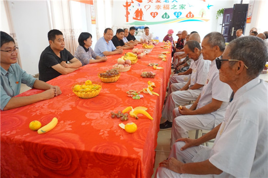 乡党委书记赵强向老人们通报了虎岗在脱贫攻坚、招商引资、人居环境整治、党建等重点工作中做出的成绩。并指出:虎岗正在以加速度发展,也正是因为你们曾在各条战线上辛勤耕耘、默默奉献,我们今天的成绩也有你们的一份功劳。赵强要求敬老院的工作人员,要时刻绷紧消防安全、食品安全、人身安全弦,严格落实安全责任制,加大安全隐患排查与整改力度,确保把各类不安全因素消除在萌芽状态;要进一步服务质量,不仅在衣食住等物质上满足老人,更要关心老人的身体和心理健康,把老人当做亲人,细心服务,让他们的晚年生活更加幸福。