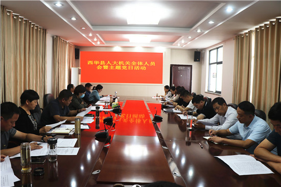 9月29日,西华县人大常委会机关召开全体人员会议,安排部署党风廉政建设工作,开展“厉行节约党员带头、反对浪费从我做起”主题党日活动。县人大常委会主任周晓燕、副主任庞有敬出席会议。