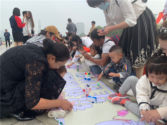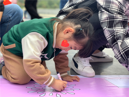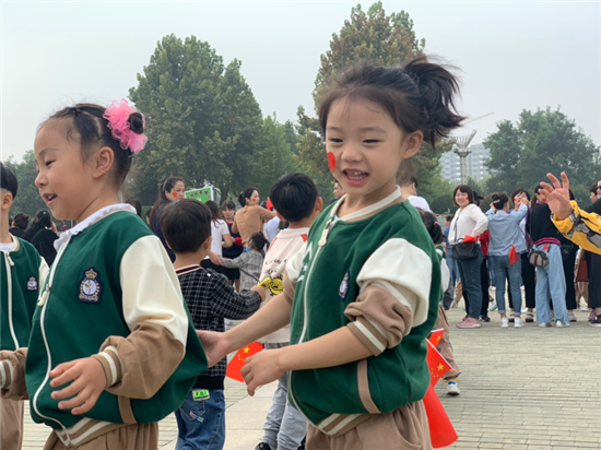 9月30日上午,在周口公园里,一群幼儿园的小朋友通过做游戏,涂画卷等活动欢度国庆节。②9