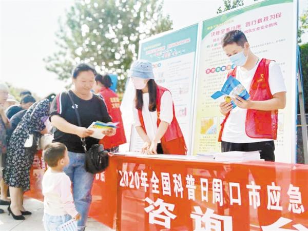 近日,由市委宣传部、市科学技术协会等单位共同主办的2020年全国科普日活动在川汇区文化广场举行。当日,市应急管理局工作人员设立咨询台,向广大群众发放安全知识宣传手册,大力普及安全生产、防灾减灾知识,营造浓厚安全舆论氛围。记者 张志新 摄