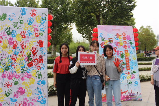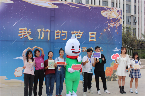 开学不久后,学生们又迎假期,今年比较凑巧的是国庆和中秋是同一天,我市高校内的学生是怎么过的。10月1日,在周口师范学院记者看到,师生们正在欢快地做着各样的游戏,“中秋嘉年华”闯关、免费月饼送祝福、读书打卡、观看红色电影等有趣有意的活动,校园内洋溢着浓郁的中秋、国庆节日文化氛围。