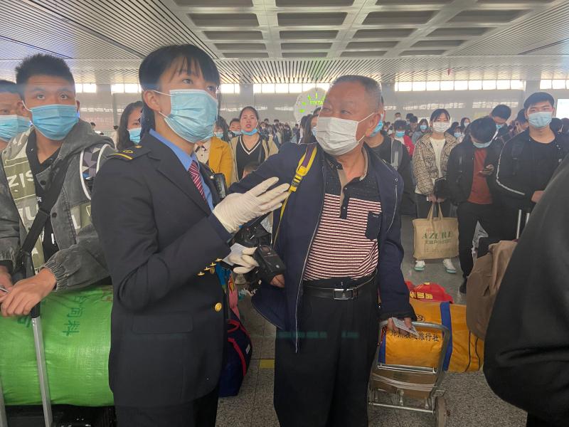 今年30多岁的王琪就是其中一名客运值班员。她家在濮阳市,今年6月份从高铁许昌北站调到高铁周口东站工作,她的主要工作是在旅客进入候车厅后,引导旅客有序排队进入站台,调配岗位人员,遇到旅客救助等突发状况,及时处置。