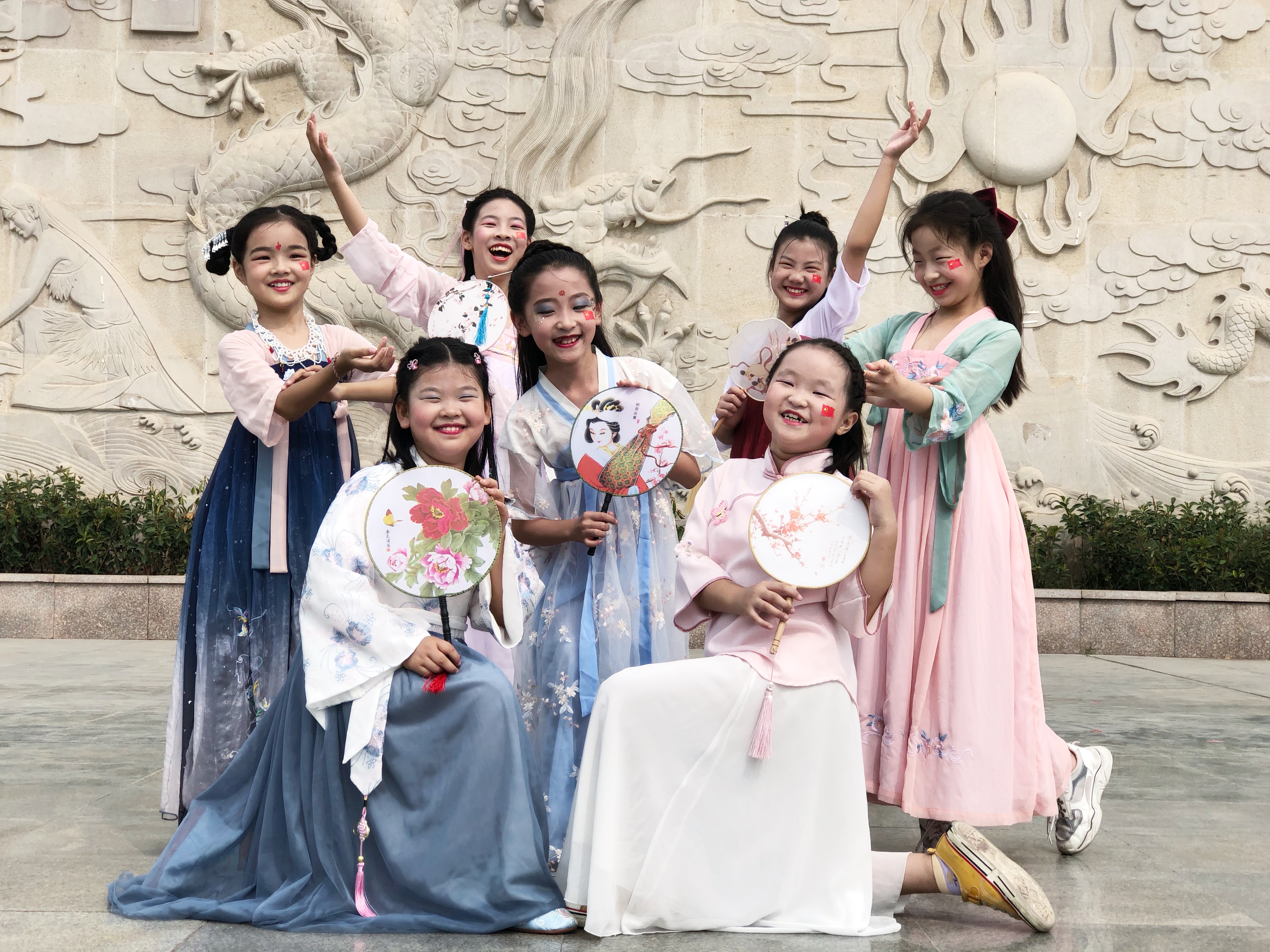 图片说明:孩子在五一广场表演节目 欢度佳节