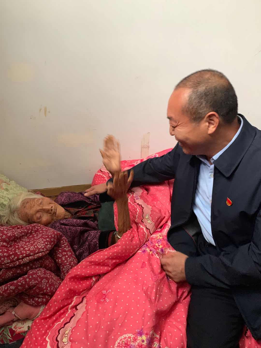 11时许,方凯一行来到大丁张村看望103岁的老人吕天。