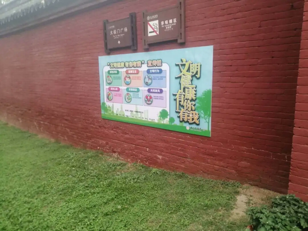 太昊陵文物保护中心充分利用游客服务中心的电子屏、广场大型LED显示屏等播放文明创建宣传视频,把文明城市创建宣传融入游客出行行为;利用景区宣传橱窗、宣传栏、公示栏等阵地发布社会主义核心价值观、中国梦、精神文明建设等方面的内容,让文明创建宣传标语随处可见;沿景区主干道设立文明提示牌,让游客在游览过程中感受到文明创建的浓厚氛围。