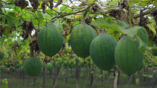 秋天是收获的季节,到处弥漫着丰收的气息。宁平镇瓜篓种植基地的瓜蒌蛋儿也由嫩绿变成橘黄,果实累累,煞是喜人,吸引许多客商前来采购,成为群众增收致富的“黄金果”。