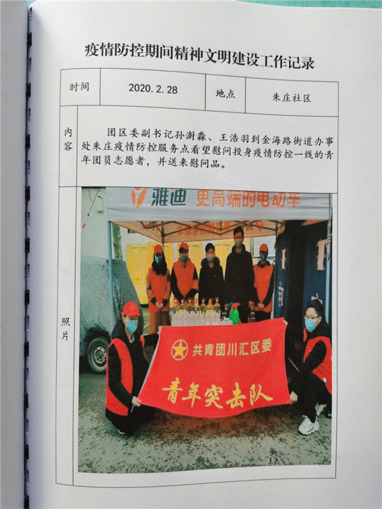 规范统一。朱庄社区创文档案资料主要包括疫情防控、综合文化服务、志愿者服务、党员教育、普法教育等内容,共12本。在格式方面,对字体、字号、图片排版、数字和标点符号使用等进行规范,做到风格统一。在活动记录方面,分为活动方案制定、活动图片、活动小结等内容,按照统一格式汇总整理,手写记录与彩色照片搭配,使活动记录清楚、生动、明了。在资料装订方面,采用统一封面活页装订。