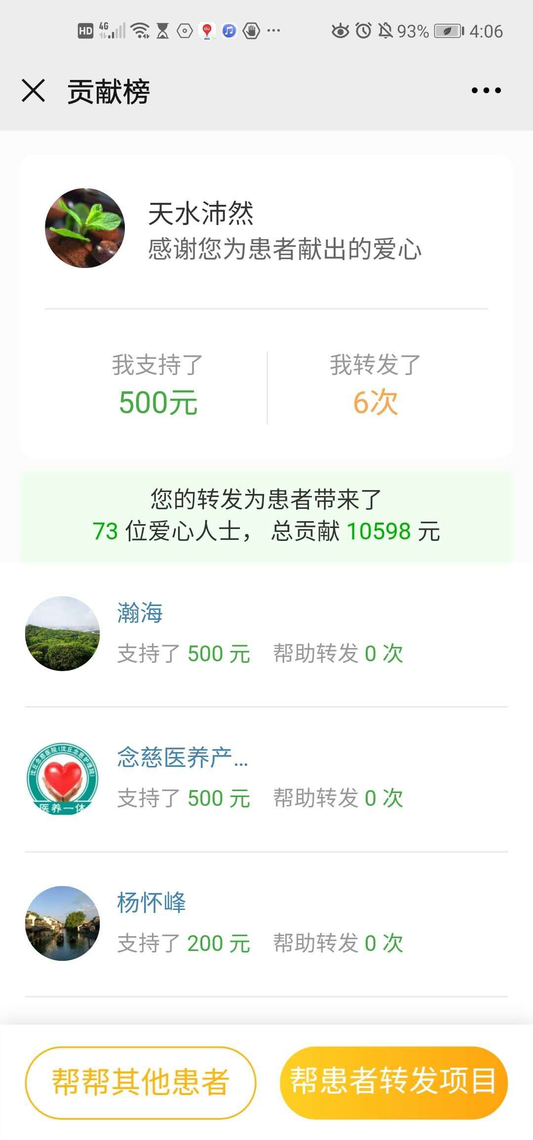 为尽快筹措治疗费用,一家人商量后于9月22日在网络平台发起“轻松筹“,截至10月13日已筹得十万余元,帮助次数2547次,省市周口籍人大代表、政协委员、企业家、原西华师范毕业的师生、小罐茶老总杜国楹等爱心人士纷纷捐款。他在西华二高就读时,教他英语的谢老师当即借出两万块钱给孩子治病。刘亚隆从小学到高中的同学和老师都发来问候,有钱出钱,有力出力。“孩子从小就喜欢帮助同学,老师们都知道,这次生病牵动着他们的心,说句心里话他们对亚隆的帮助令我很感动。”亚隆爸爸说。