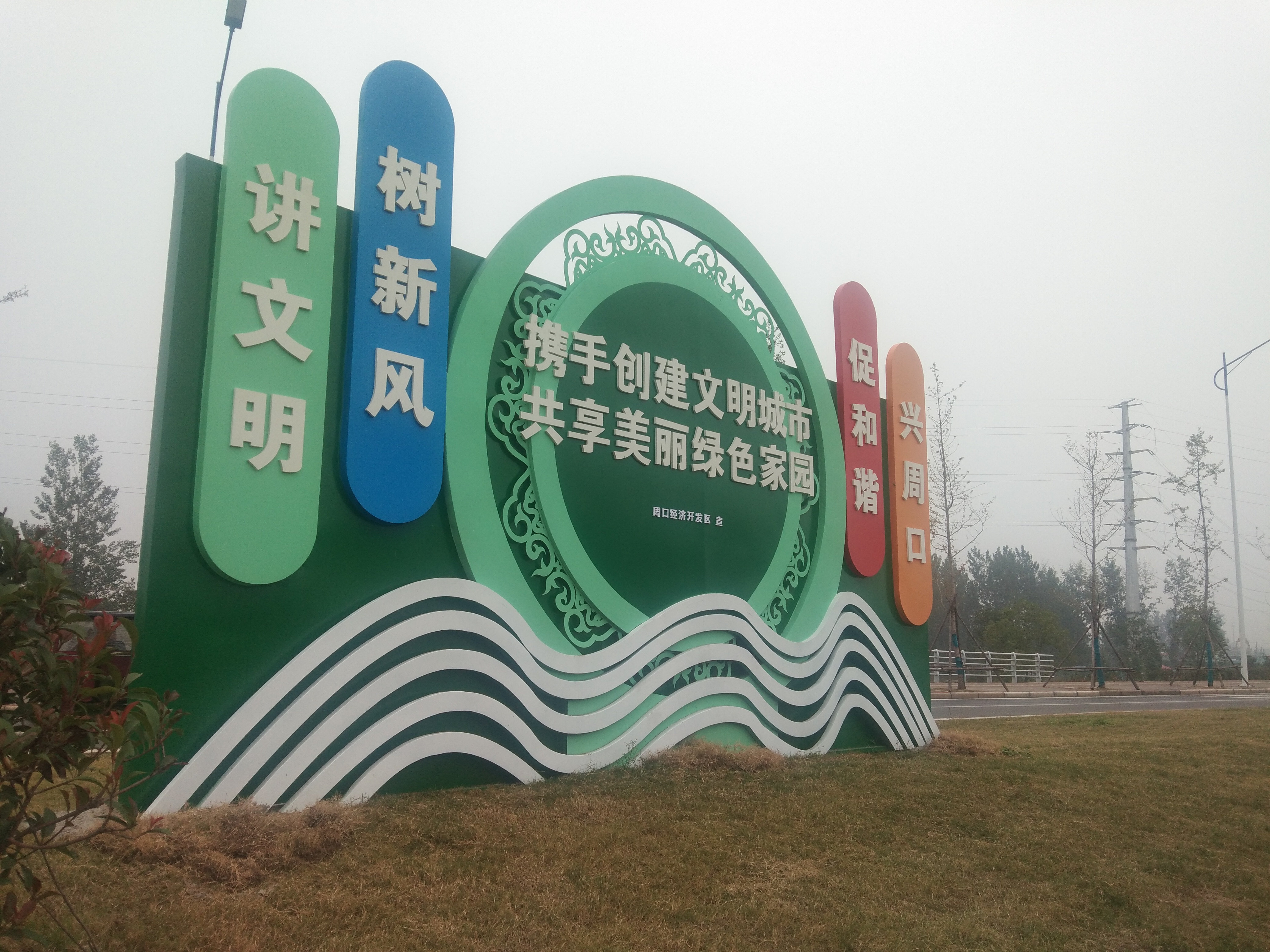 10月13日,记者看到一个写有“讲文明、树新风、促和谐、兴周口”的公益广告牌出现在周口大道边。如今,一个个造型精美的公益广告牌出现在中心城区,为“创文”营造浓厚的宣传氛围的同时,也扮靓了城市。②2张洪涛 摄