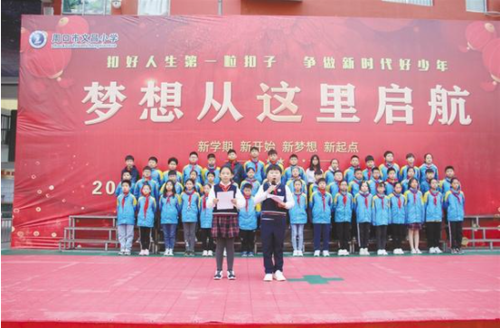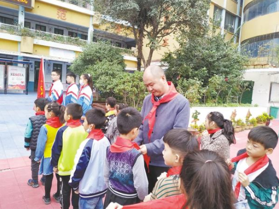 10月13日,是中国少年先锋队诞辰日,又称少先队建队纪念日。周口市文昌小学坚持以立德树人,把课堂教学与主题活动相结合,开展了多种多样的“国旗下成长”主题教育活动。图为在10月12日的升旗仪式上,六(4)中队少先队员向全校学生普及红领巾知识。记者 王珂 通讯员 魏云红 摄