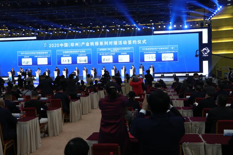 10月14日、15日,2020中国(郑州)产业转移系列对接活动在郑州市举行。15日上午,在郑州国际会展中心轩辕堂举行开幕式暨产业转移合作签约仪式,郸城县长李全林、县政府党组成员张仁杰带领郸城代表团参会,并成功签约5个产业转移项目,涉及食品、新能源、制造业、高新技术等诸多领域,签约金额达31.6亿元。