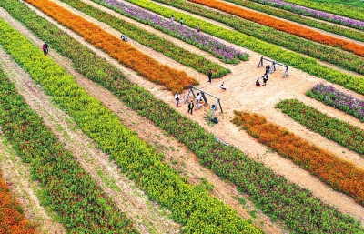二○一八年以来,我省共创建224个“美丽小镇”3388个“四美乡村”94.6万个“五美庭院” “十一”假期,游客在宁陵县逻岗镇黄老家村花海中赏花。该村打造生态花田小镇,吸引了众多游客前来拍照游玩,有力提高了当地村民收入。吕忠箱摄 |