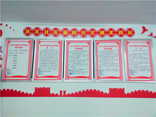 自“创文”工作开展以来,庆丰社区把创建文明和谐社区摆到党支部的重要议事日程上,召开庆丰社区创建全国文明城市工作动员会,安排部署创建工作,成立以党支部书记为组长的“创文”工作领导小组,对照创建目标、标准和责任,细化分解,把责任落实到人。以楼院、居民点为单位,利用口头宣传、发放各类“创文”宣传手册、悬挂宣传条幅,制作宣传版面等方式,为“创文”工作营造良好的创建氛围。吸纳有威望、有热情、有能力、乐于奉献的“五老人员”和党员群众志愿者组建成立3个高质量的党群议事会,由党员带头开展“创文”入户调查、志愿活动,建立新时代文明实践站,切实提高了广大居民的文明素质。