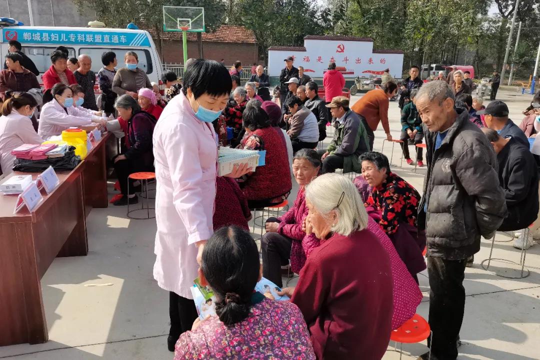 10月17日,在第七个“全国扶贫日”到来之际,郸城县卫健委组织县人民医院、县中医院、县第二人民医院、县妇幼保健院牵头的四大医健集团,深入扶贫村开展扶贫日大义诊活动,在脱贫攻坚决战决胜时刻,为群众送去健康,助力健康扶贫,实现全民健康奔小康。