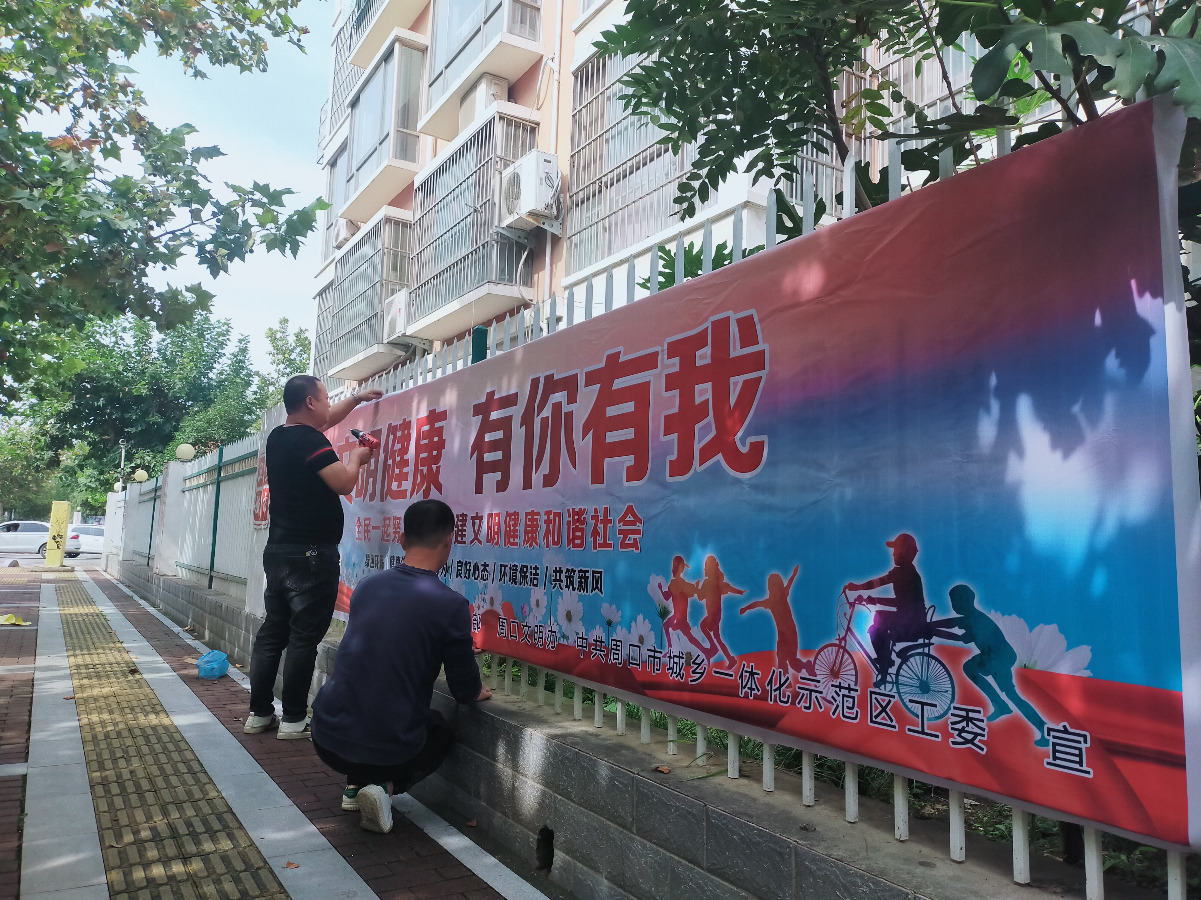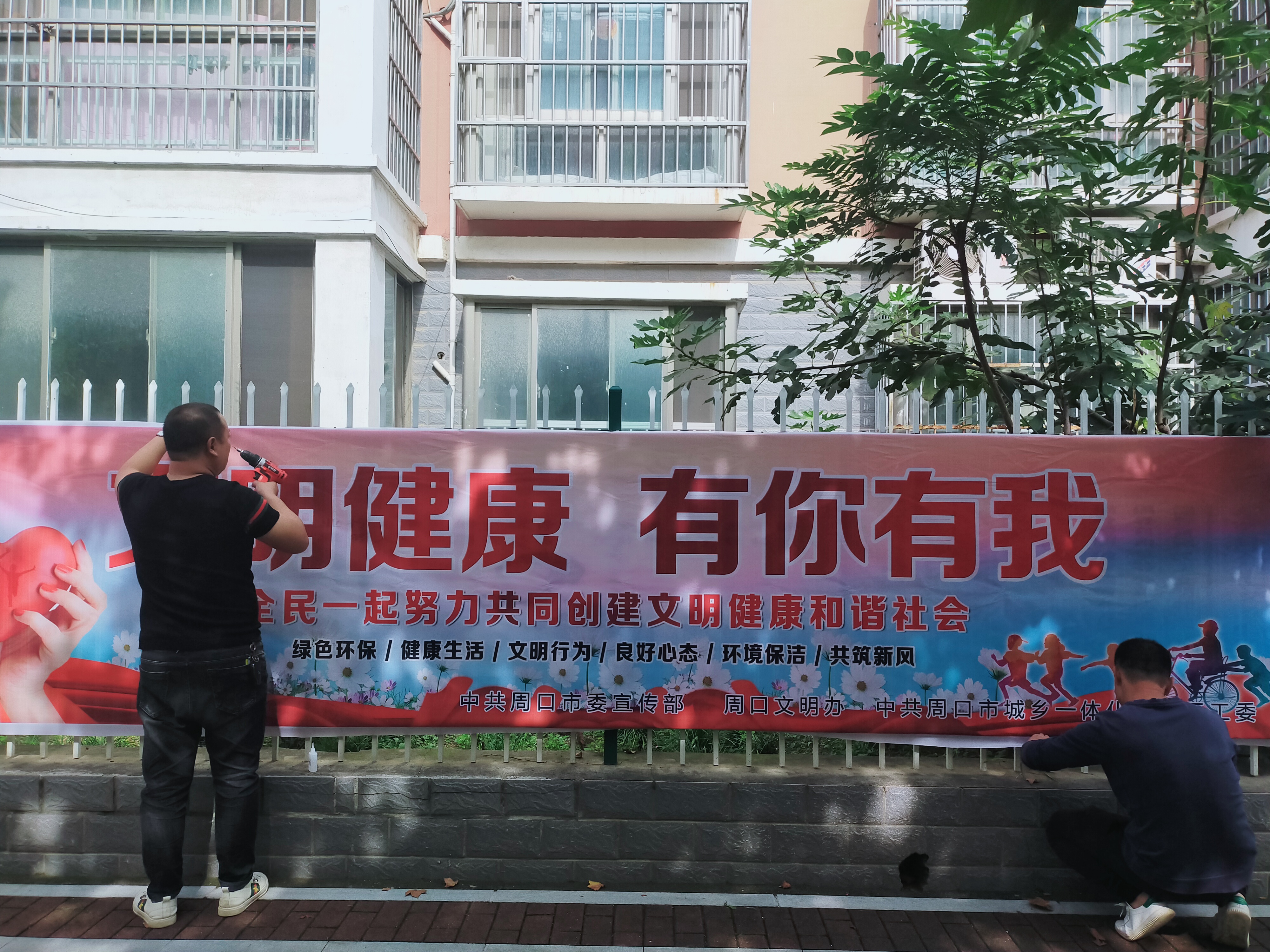 社会主义核心价值观、市民文明公约、二十四孝图……自“创文”工作开展以来,我市不断加大宣传力度,在办公场所、公共区域、居民小区等主要场所及小区出入口、主要路段等张贴、悬挂开展文明创建工作的宣传标语口号,提高了市民对创建全国文明城市提名城市重要性的认识和工作积极性,形成了全民动员、人人参与的良好氛围。图为10月18日上午,工作人员正在中心城区府汇街张贴“创文”标语。③7
