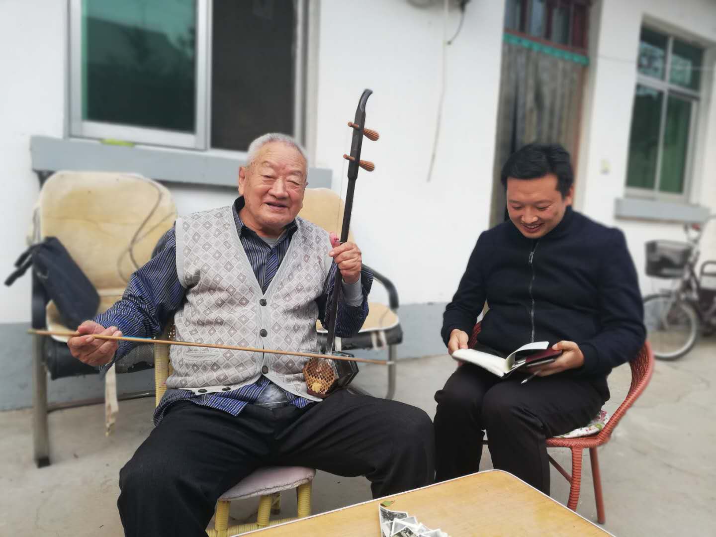 就是在今天,朱德银在门口广场游玩时,也会用携带着的听诊器、血压计等医疗器材,只要有人需要,他都会义不容辞地为群众义诊。