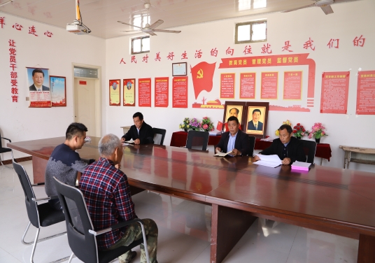(接到郑德民躺在病床上布置工作的电话,县自然资源局驻土赵行政村第一书记王玉杰、土赵行政村主任邱成明心怀悲痛立即召开村干部会议落实。郑德民的位置是空的。)