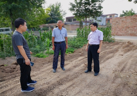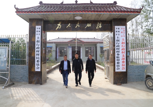 (图为李楼乡党委副书记李文明和驻村第一书记、土赵村干部在村室调研)