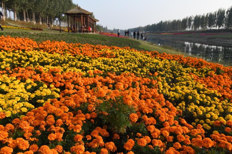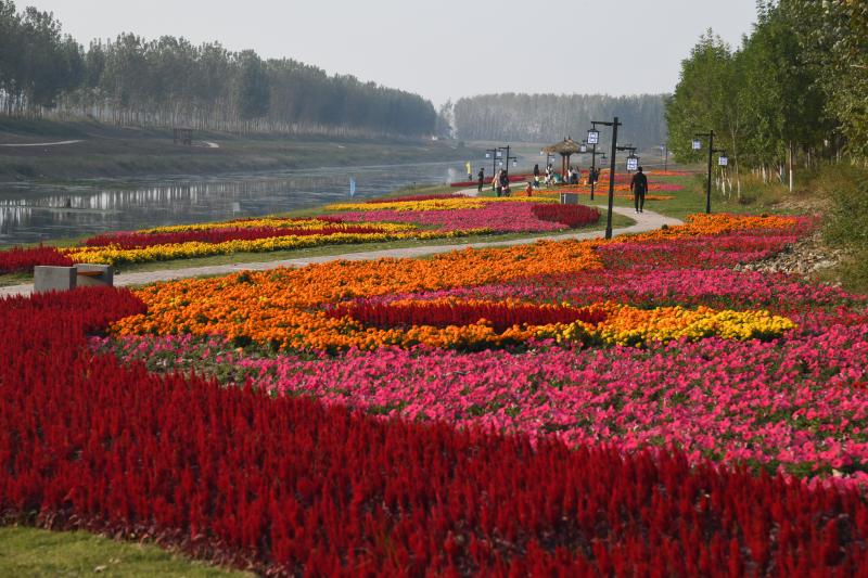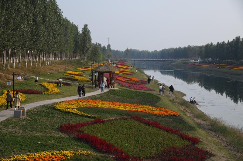 10月20日,市民在商水县高标准农田灌溉渠两岸游玩。