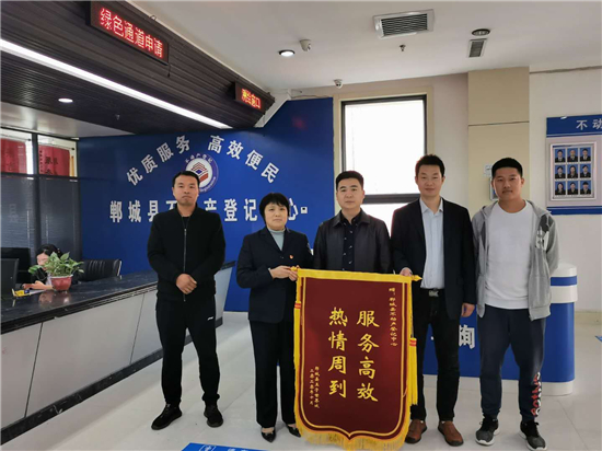 一面锦旗代表着一份感谢、一份肯定,郸城县不动产登记中心将把鼓励化作动力,继续秉承便民、高效的服务宗旨,不断创新服务理念、优化办事流程、提高工作效率,努力将登记中心打造成政府放心、群众满意的服务部门。③5