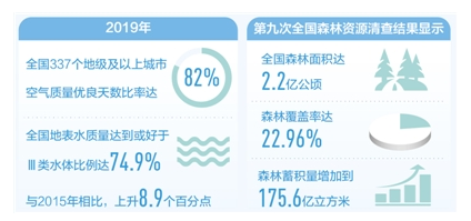 5年砥砺前行,污染防治攻坚战全面推进。截至2019年底,“十三五”规划纲要确定的生态环境领域9项约束性指标,有8项已提前完成。天蓝水净地绿的美丽中国正向我们走来。
