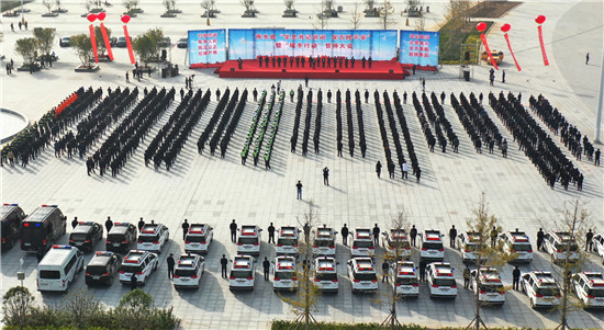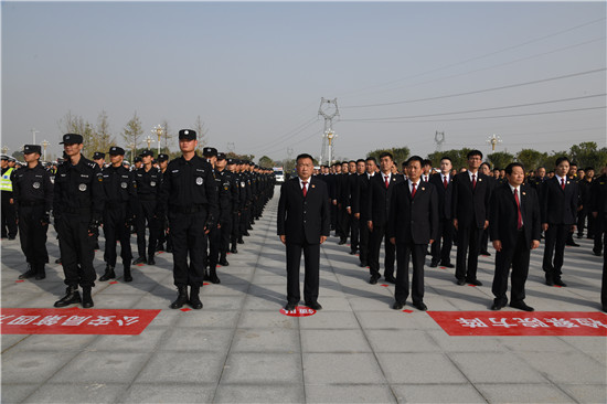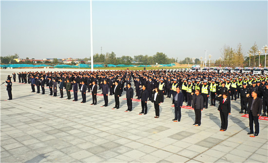“对党忠诚、服务人民、执法公正、纪律严明……”10月22日下午,在商水县学习总书记训词、保百姓平安暨“暖冬行动”誓师大会上,千余名平安建设成员单位党员干部和政法干警的朗朗宣誓声响彻天空。这标志着该县提升公众安全感和政法机关执法满意度战役全面打响。县委书记孔阳出席会议并宣布启动仪式开始。县委副书记、县长田林讲话。县委副书记张峰主持会议。县人大常委会主任李德来,县政协主席孙培忠,县委常委李本磊、王勇、王卫东、黄宇飞、王中红、何永华、崔岩、杨敏等在商的县处级领导干部出席会议。